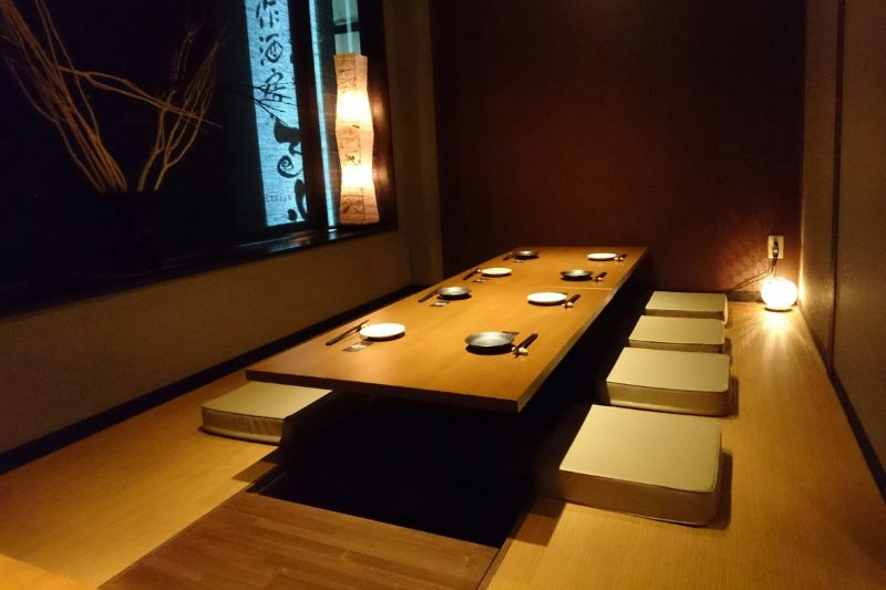 ゆったりとくつろげる掘りごたつ式の個室。接待やご家族でのお食事に最適です。